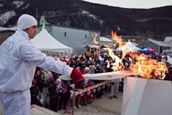 Wednesday highlights include Australian gold medalist skier Alisa Camplin carrying the torch through the historic Gold Rush capital Dawson City. Frigid temperatures caused the Olympic flame to burn dry, forcing VANOC to relight a torch from one of the backup flames contained in a miner’s lamp. The flame then took a ride on a dog sled through the northern Yukon town Old Crow where the temperature dropped to minus 37c.