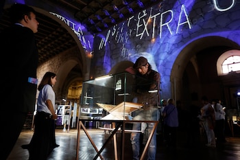 El texto, declamado por altoparlantes, desencadenó aplausos precedidos de lágrimas cuando una actriz personificando a la poeta, ascendió por una simbólica y monumental escalinata mientras una representación del rey Gustavo de Suecia le entregaba el Nobel.