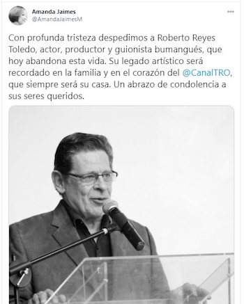 La noticia fue confirmada a través de redes sociales por la gerente del Canal TRO, Amanda Jaimes, y la revista Vea, así como por personalidades de la televisión en el país, como Nórida Rodríguez y Toto Vega.
