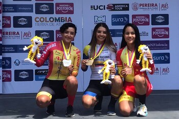 La acompañaron en el podio la bogotana Tatiana Dueñas, del equipo Avinal El Carmen de Viboral, que con un tiempo de 28´55 minutos, se colgó la medalla de plata. El bronce fue para Camila Valbuena, que corre para la liga de ciclismo de Bogotá.