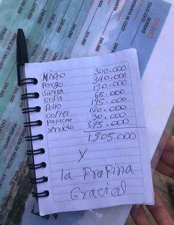 Sopa de $65.000, al igual que $340.000 por un pargo rojo son algunos de los excesivos cobros que se pueden apreciar en la factura artesanal. Entre los personajes que reaccionaron a la publicación está el presidente del América de Cali, Tulio Gómez, quien calificó como un robo la situación y señaló que debido a personas como los propietarios de esos negocios, la economía y confianza del turista en Cartagena se reducen cada vez más.