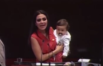 Junto a ella subió la diputada Érika Vanessa del Castillo (Morena), también cargando a su bebé, y juntas reiteraron los retos que tiene una mujer que decide ser profesionista y además convertirse en madres.