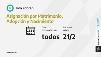 Desde hoy y hasta el 10 de marzo se pagan las Asignaciones de Pago Único (Matrimonio, Adopción y Nacimiento) para todas las finalizaciones de documento.