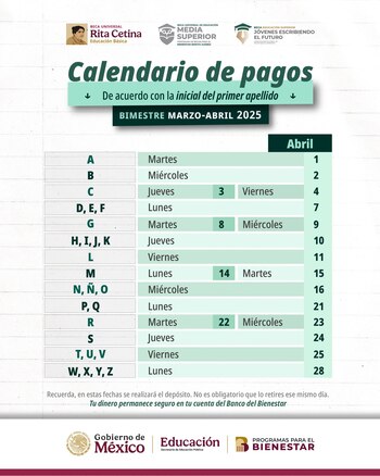 Calendario de pagos de abril 2025