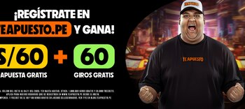 | Te Apuesto | Perú | S/60 + 60 giros gratis | Se otorgan al registrarte |
