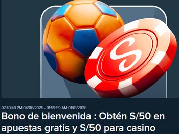 El grupo internacional de apuestas deportivas indica que los nuevos jugadores peruanos de Stake pueden reclamar un bono de bienvenida de S/50 en apuesta gratis y S/50 para casino. Para acceder a la gratificación, se debe abrir una cuenta y realizar una recarga mínima de S/100.